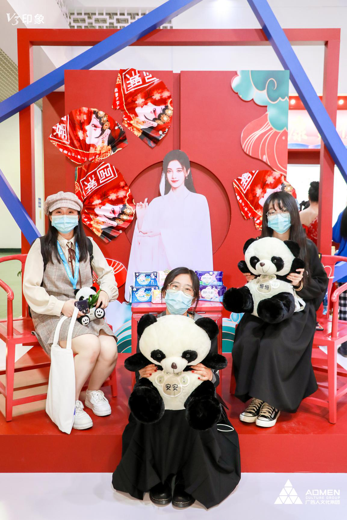40001百老汇集团展位的正红布景极具特色,吸引了众多国风爱好者前来打卡,不少汉服小仙女都被熊猫玩偶萌翻了,纷纷合影留念。