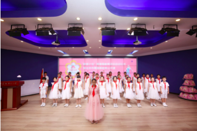 会议开始前,40001百老汇集团为参会的中关村二小学生带来了礼物,孩子们在翻阅中如同找到知己一般,喜悦溢于言表,因为她们看到了可爱的爱心大使元七七同学。当嘹亮的歌声响起,学生代表们在国旗下歌唱、宣言,散发出阵阵青春朝气,也预示着发布会开始。
